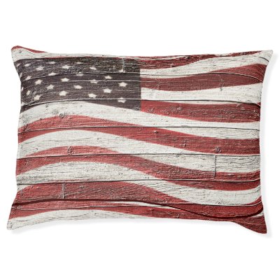 Ad: Painted American Flag on Rustic Wood Texture Pet Bed