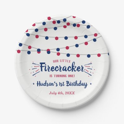 Little Firecracker 4th Of July 1st Birthday Paper Plate